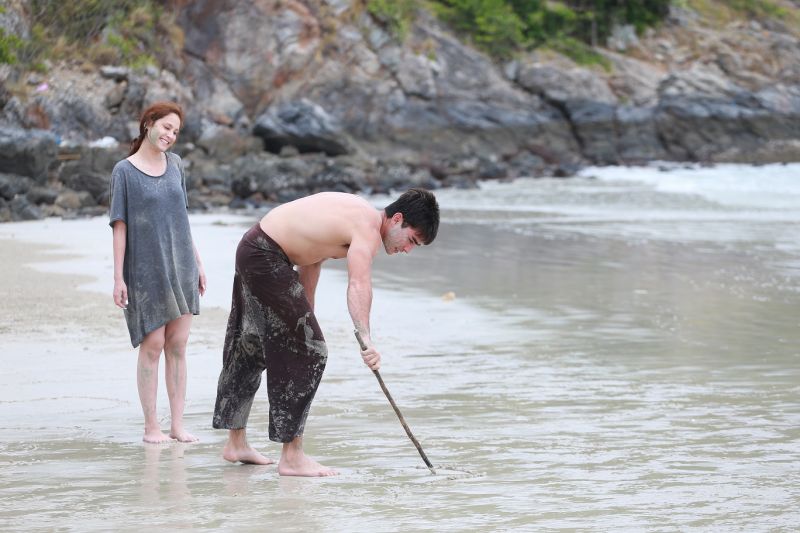 หินก็เลยยอมให้ติ๊ยาโกนหนวด ก่อนจะขี่หลังวิ่งเล่นและว่ายน้ำทะเลกันจนเปียกปอน แล้วก่อนพระอาทิตย์ตกก็ก่อกองทรายเล่นกันเหมือนเด็กๆอย่างมีความสุข