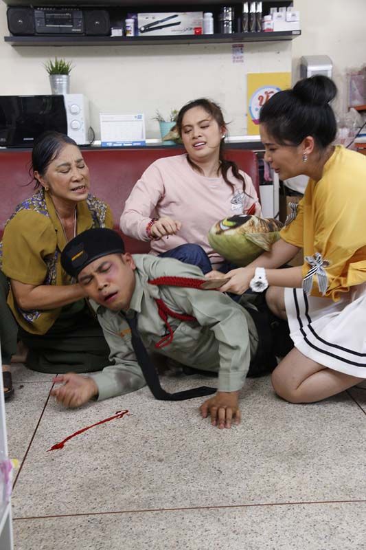 เบื้องหลังสนุกๆ ของตอนนี้เป็นฉากที่ แม่อูม-คุกกี้-แองเจิ้ล พากันตื่นตูมสะกดรอยเฝ้าสังเกตุ รปภ.คิง ทุกฝีก้าว แต่ละคนจ้างร้อยเล่นล้านเข้าทาง ผู้กำกับเบิร์ด-ภูมิภัทร ที่กำชับให้คิงเล่นหน้าโหดเอาให้ทุกคนสงสัยพฤติกรรมเราให้ได้ บวกกับ ณัฐ ที่หายตัวไปลึกลับพาลให้แก๊งนักสืบสาวยิ่งปักใจเชื่อว่าเป็นฝีมือคิงเชือดโหดแน่นอน งานนี้ รปภ.คิง เลยโดน แม่อูม จัดหนักจัดใหญ่กระชากคอไปเค้นความจริง บู๊ก็มา..เลือดก็มี อันนี้คิงขอฝ่ายพร็อพจัดด่วน แถมให้คิวแม่อูม-คุกกี้-แองเจิ้ลระดมฟาดให้หนำใจ ยิ่งกว่าจา-พนมก็ คิง ณภัทร นี่ล่ะจ้า พลีชีพให้นักแสดงฟาดตามอารมณ์ตัวละครอยู่หลายเทค ขนาด ณัฐ ที่เข้ามาห้ามในฉากยังตกใจจริงที่เห็นพี่คิงกระอักเลือดจมกองเท้า เล่นใหญ่ผสมเมคอัพเขียวบวมช้ำเข้าไปอี๊ก – – อ๊ะ..อ้าว ว่าแต่สุดรอดกลับมาหอพักเกียรตินิยมได้ไง? ซับซ้อนซ่อนเงื่อนขนาดนี้..รอดูเฉลยใน “รักนี้บุญรักษา” ตอน คนร้ายๆ ออกอากาศวันอาทิตย์ที่ 21 เมษายน 2562 เวลา 9.00 น. ทางช่อง 7HD กดเลข 35 และ Facebook Live Fanpage : Ch7HD หรือรับชมย้อนหลังได้ทาง BUGABOO.TV