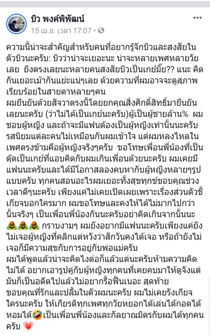 ‘บิว พงค์พิพัฒน์’สุดจะกลั้นเปิดหมดใจถูกมองเป็น’เกย์’