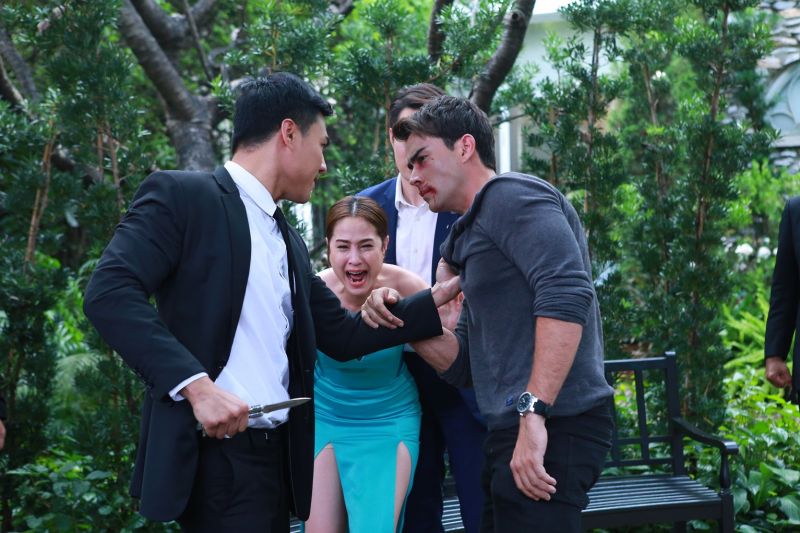 ฉากนี้ถ่ายทำกันที่อกาลิโก สุขุมวิท เซ็ทฉากเป็นร้านดอกไม้สวยงาม ฉากนี้หนุ่มซัน เล่นร้ายแบบกวนๆ ร้ายลึกได้ดี เล่นบทกอดหิม จูจุ๊บขวัญแบบชิวชิว เพราะซันกับขวัญสนิทกันอยู่แล้ว เล่นแหย่กันไปมา ขวัญว่าซันตอนที่ดึงหัวมาจูบแก้มให้เบาๆหน่อยคอเคล็ดกันพอดี ส่วนแก๊งค์นักข่าวกับ แก๊งค์ที่มาก่อน มองกันไปมาทุกคนแปลกใจกับความสัมพันธ์ที่เกิดขึ้นทีนี้มาถึงฉากดราม่าแอ๊คชั่นแล้ว เมื่อหลุยส์ มาขอคุยกับขวัญและทวงถามคำสัญญาที่มีให้แก่กัน ขวัญพูดไม่ออก ซัน รีบเข้ามา และบอกว่าขวัญเป็นผู้หญิงของเขา หลุยส์ไม่มีสิทธิ์อีกแล้ว พร้อมสั่งลูกน้องซ้อมหินแบบไม่ยั้งมือทั้งจะเอามีดแทงขวัญร้องไห้บอกให้หยุดคิมจับตัวไว้ บอกจะต่อยจนกว่าขวัญบอกเลิก และไม่รักหลุยส์ ทำให้ขวัญบอกเลิกร้องไห้ต่อมน้ำตาแตก เป็นฉากดราม่าที่เล่นอารมณ์กันเต็มที่ ส่วนหลุยส์หน้าเยิน เสียใจเสียความรู้สึกจนพูดไม่ออก นอนกับพื้นเจ็บทั้งตัว เจ็บทั้งใจ ส่วนคนที่เจ็บไม่แพ้กันคือขวัญ โดน ซัน สวมบทโหด ดึงเข้ามาจูบย่ำยีอีก ขวัญร้องไห้ต่อมน้ำตาแตกอีกครั้ง สาวขวัญเล่นดราม่าสบายมาก แต่หลุยส์ยอมรับว่าเล่นยากมากกับบทเสียคนรักแบบนี้ตามชมฉากดราม่าเข้มข้นฉากนี้ได้ในละคร “ไฟหิมะ” ศุกร์ที่ 26 เมษายนนี้ เวลา 20.05 น.ช่อง 7HD กด 35