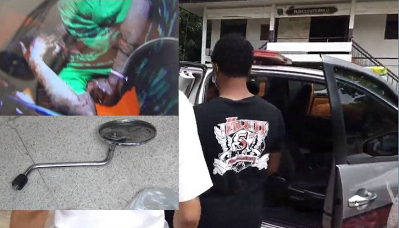 Suspect Songkran Chaiyo was accused of attacking his girlfriend on the night of August 18 before dousing her with gasoline and setting her on fire, resulting in burns all over her upper body, a destroyed left cornea and a swollen brain – the latter two injuries sustained from him allegedly beating her with the side mirror of a motorcycle. The alleged assault took place in front of his elderly relative’s house in Tambon Plaeng Yao in Plaeng Yao district.