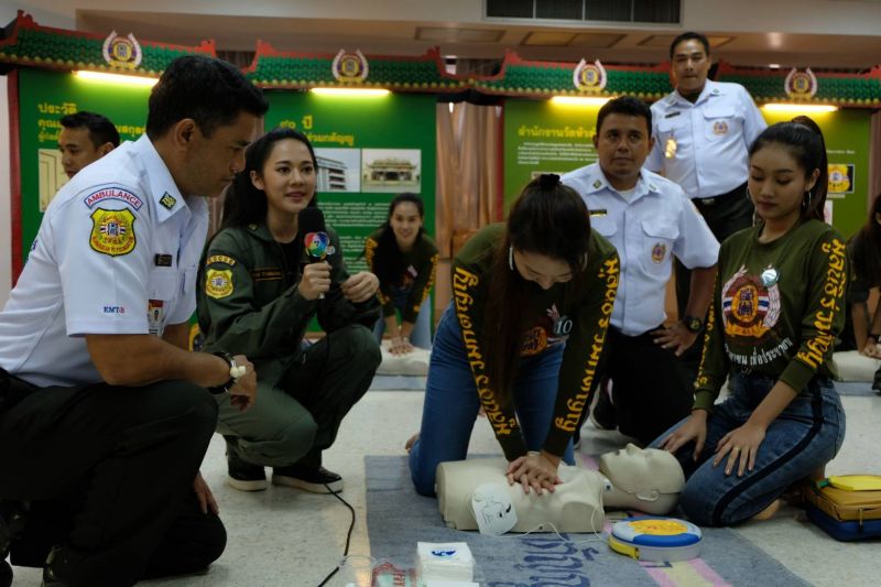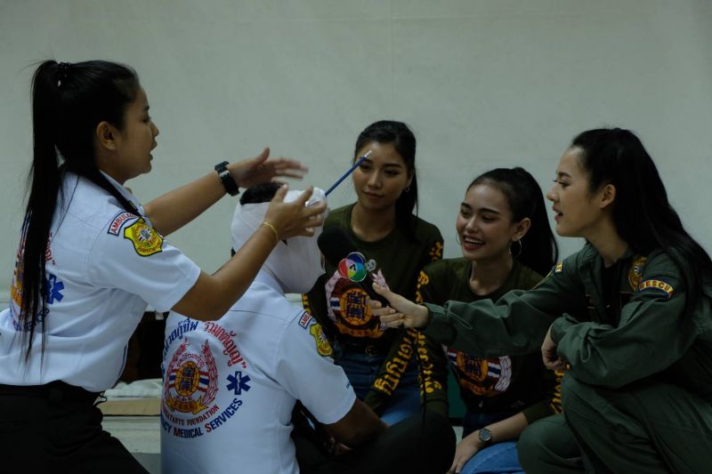 โดยเหล่าผู้เข้าประกวดได้สวมเสื้อแขนยาวของมูลนิธิร่วมกตัญญู ซึ่งเป็นมูลนิธิที่มุ่งมั่นในการเสียสละด้วยใจ เพื่อรับใช้สังคม พร้อมได้เรียนรู้การทำ CPRเบื้องต้น หรือการช่วยชีวิตขั้นพื้นฐาน การปฐมพยาบาลผู้ประสบอุบัติเหตุเบื้องต้น ทั้งผู้ประสบเหตุจากอาหารติดคอ หรือได้รับบาดเจ็บตามร่างกาย ซึ่งสาวงามได้ตั้งใจเรียนรู้และลงมือภาคปฏิบัติทำอย่างเต็มที่ นับเป็นประสบการณ์สำคัญของผู้เข้าประกวดมิสแกรนด์ กรุงเทพมหานคร