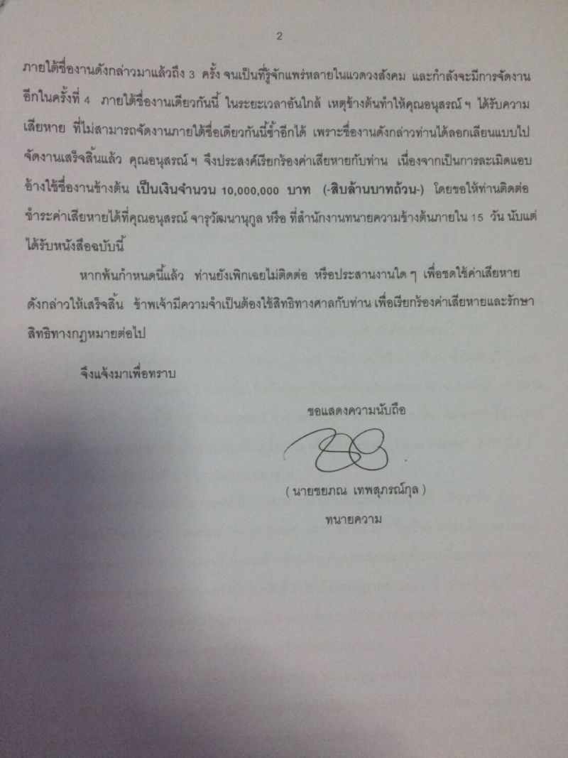 โดยงานครั้งล่าสุดที่จะเกิดขึ้นในวันที่ 27 เมษายนนี้ ยังจะมั่นใจใช้คำว่าครั้งที่ 5 หรือไม่ต้องติดตาม แต่ที่แน่ๆ เจ้าของลิขสิทธิ์ตัวจริงอย่างนุ อนุสรณ์ จารุวัฒนานุกูล ที่ยื่นโนติสไปถึง 2 ครั้งแล้ว ตั้งแต่เกิดการแอบอ้างขึ้นเมื่อปีก่อน น่าจะไม่ยอมให้ผ่านไปได้ด้วยดีแบบปีที่แล้วเป็นแน่แท้ และเตรียมเดินหน้าฟ้องอย่างถึงที่สุดถ้ายังละเมิดลิขสิทธิ์ต่อไปอีก งานนี้ถือเป็นบทเรียนของผู้จัดงานและดารา-ศิลปินว่าจะไปรับรางวัลจากใคร ของสถาบันไหน ต้องดูให้ดี ดูให้รอบคอบและรอบด้าน ระวังจะเงิบเอาได้ง่ายๆ