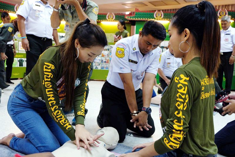 หลังจากคัดเลือกสาวงามผู้เข้าประกวด “มิสแกรนด์ กรุงเทพมหานคร 2562” รอบสุดท้ายจำนวน 15 คน ทับทิม-อัญรินทร์ ธีราธนันพัฒน์ ผู้อำนวยการกองประกวดมิสแกรนด์ กรุงเทพมหานคร 2562 (Provincial Director Miss Grand Bangkok 2019) หรือ PD ได้จัดกิจกรรมดีๆ ให้กับผู้เข้าประกวด ด้วยการสมัครเป็นอาสาสมัครมูลนิธิร่วมกตัญญู พร้อมอบรมการปฐมพยาบาลผู้ป่วยเบื้องต้น โดยมีเจ้าหน้าหน่วยกู้ภัย และอาสาสมัครของมูลนิธิฯ คอยให้คำแนะนำกับสาวงามอย่างเป็นกันเองและอบอุ่น ที่มูลนิธิร่วมกตัญญู อ.บางพลี จ.สมุทรปราการ โดยเหล่าผู้เข้าประกวดได้สวมเสื้อแขนยาวของมูลนิธิร่วมกตัญญู ซึ่งเป็นมูลนิธิที่มุ่งมั่นในการเสียสละด้วยใจ เพื่อรับใช้สังคม พร้อมได้เรียนรู้การทำ CPR เบื้องต้น หรือการช่วยชีวิตขั้นพื้นฐานการปฐมพยาบาลผู้ประสบอุบัติเหตุเบื้องต้น ทั้งผู้ประสบเหตุจากอาหารติดคอ หรือได้รับบาดเจ็บตามร่างกาย ซึ่งสาวงามได้ตั้งใจเรียนรู้และลงมือภาคปฏิบัติทำอย่างเต็มที่ นับเป็นประสบการณ์สำคัญของผู้เข้าประกวดมิสแกรนด์ กรุงเทพมหานคร
