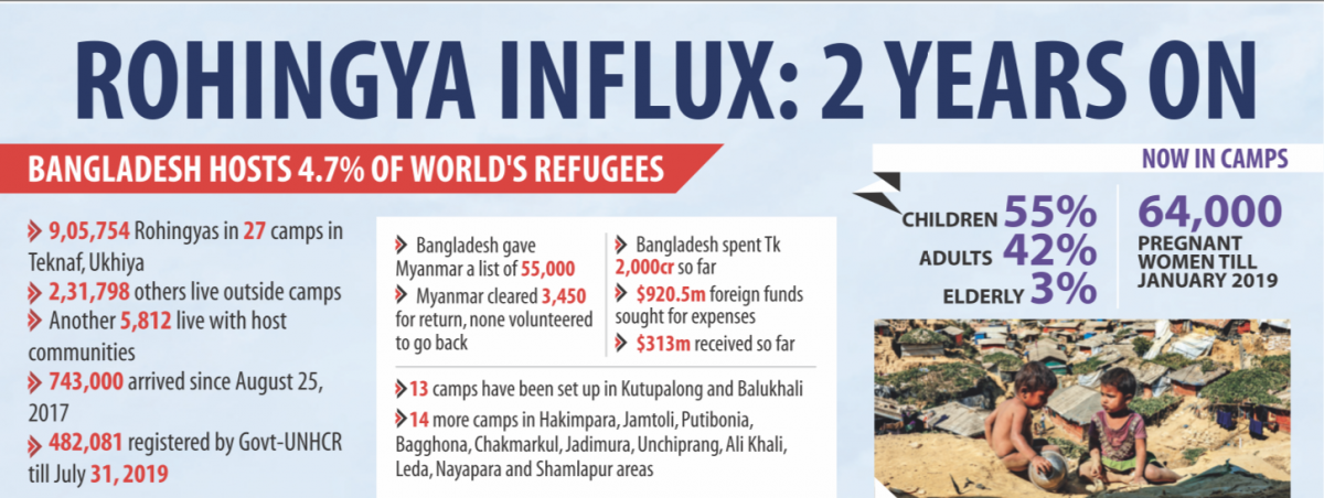 Bangladesh now hosts some 1.1 million Rohingyas, including 743,000, who fled the brutal military crackdown in Rakhine since August 25, 2017.