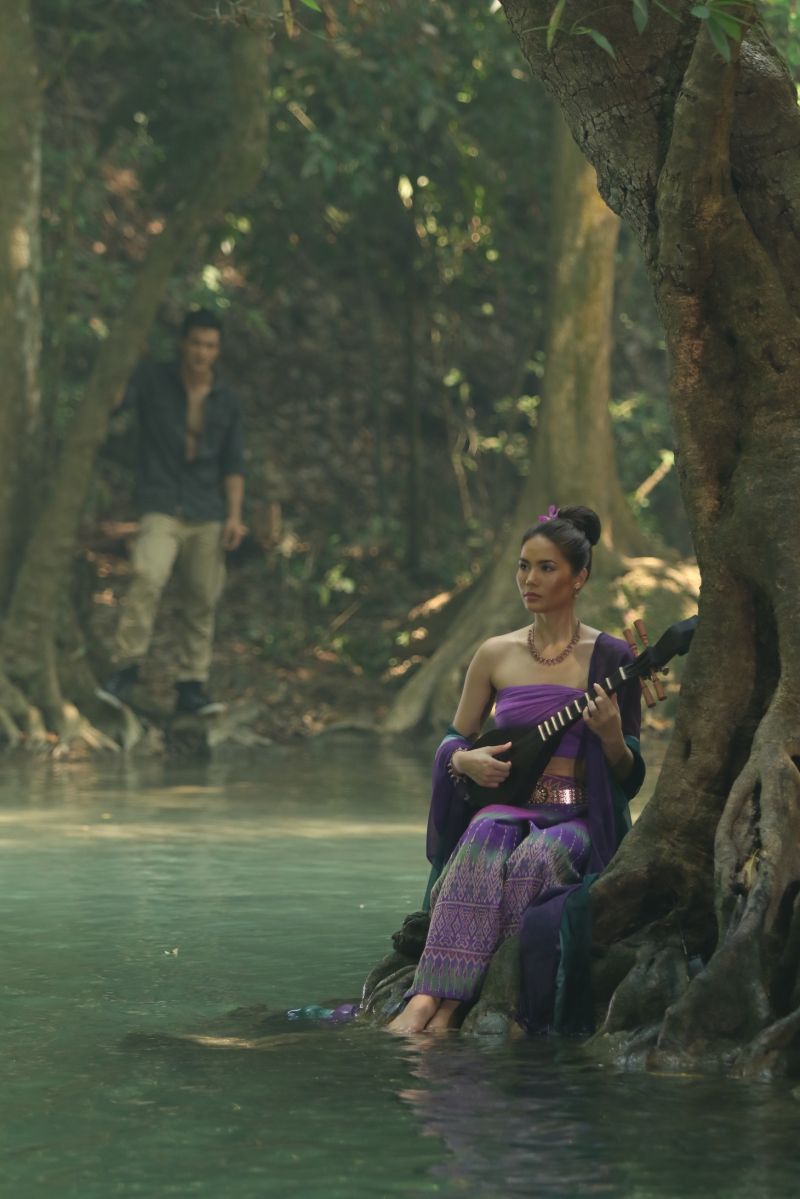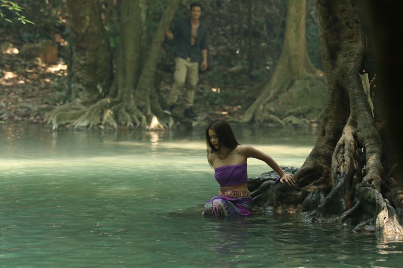 ฉากนี้ ถ่ายที่น้ำตกเอราวัณ จ.กาญจนบุรี บรรยากาศถึงแดดจะร้อน แต่ละอองน้ำตกก็พอทำให้เย็นได้บ้าง ทำเอานักแสดงหลายคน อิจฉาน้ำตาลกับต๊อบ ที่จะได้ลงแหวกว่ายแช่น้ำตก ด้านน้ำตาลแม้อยากจะแช่น้ำเย็นให้ฉ่ำปอด แต่เห็นฝูงปลาแล้ว ทำใจกล้าๆ กลัวๆ อยู่นาน หลัง ผู้กำกับ ภูมิภัทร สังวาลย์วรกุล บรีฟทุกอย่างเสร็จ เริ่มที่ต๊อบต้องถ่ายฉากตัดต้นไม้ใหญ่ ซึ่งทีมงานได้เอาท่อนไม้ปลอมมาหลอกในการเลื่อยจริง ทันทีที่ถ่าย ต๊อบเปิดเลื่อยไฟฟ้า และจะเลื่อยไม้ เลื่อยก็ดับแบบไม่รู้สาเหตุ ทำแบบนี้อยู่ 3 ครั้ง เพราะเปิดเลื่อยได้ แต่เลื่อยไม่ได้ เพราะเลื่อยดับ ทีมงานจึงต้องพิธีขอขมาสิ่งศักดิ์สิทธิ์ พอเริ่มถ่ายต่อทุกอย่างก็ผ่านพ้นได้ราบรื่น ของแบบนี้ ไม่เชื่ออย่าลบหลู่ น้ำตาลที่อยู่ในเหตุการณ์รีบยกมือไหว้ก่อน เพราะเดี๋ยวต้องมีฉากลงน้ำ ถ่ายต่อ น้ำตาลนั่งดีดพิณด้วยใบหน้านิ่งสงบ ก่อนจะค่อยๆ ปรายสายตามองต๊อบด้วยสายตายั่วยวน แล้วค่อยๆ ลงน้ำ แหวกว่าย ต๊อบรีบพุ่งตัวลงน้ำตาม ว่ายไปคว้าตัวน้ำตาลไว้ จังหวะที่น้ำตาลหันหน้ามา ต๊อบตกใจสุดขีด เพราะต้องเห็นหน้าสวยงามเป็นผีสยดสยอง แต่ต๊อบเล่นใหญ่เกินไป ตีน้ำกระจายตูมเบ้อเร่อ จนน้ำตาลตกใจกรี๊ดแตกไปด้วย เพราะผมเปียกจนหัวลีบ โชคดีที่ซีนนี้ได้ภาพแล้ว ถ่ายต่อ ฉากต๊อบเป็นศพ แมนๆ กล้ามปูซะอย่าง แต่งเอ็ฟเฟ็คหน้าเละแล้ว ตายขึ้นอืดทั้งที ก็ต้องมีหนอนยั้วะเยี้ยสมจริงกันหน่อย ผู้กำกับสั่งเทหนอนจริงเต็มหน้าเต็มตัว ทำเอาน้ำตาลที่แอบมายืนเชียร์ขนลุกสุดพลัง ติดตามชมฉากเปิดตัวสุดหลอนนี้ได้ วันจันทร์ที่ 6 พฤษภาคมนี้ เวลา 18.45 น. ทางช่อง 8 กดเลข 27