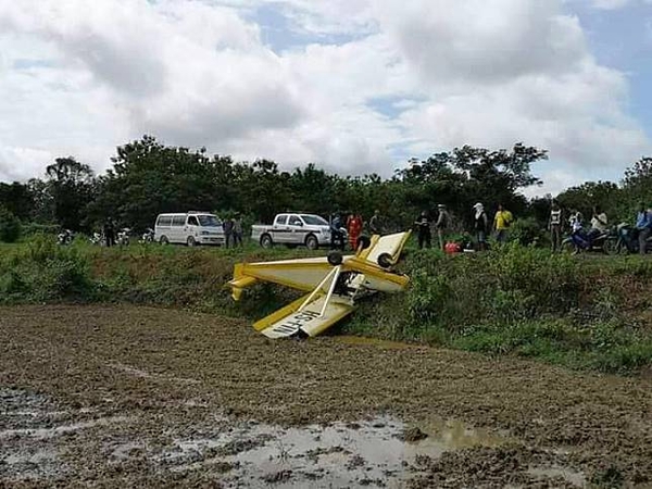 A private light plane made an emergency landing in a rice field in Sukhothai’s Sri Satchanalai district Monday morning. The pilot and the passenger were unharmed.