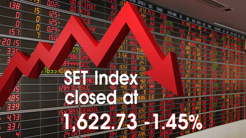 The SET Index closed at 1,622.73, down 1.45 per cent at the end of the day, while its morning trading session closed at 1,611.77, falling 2.12 per cent, in reaction to the intensifying trade spat.