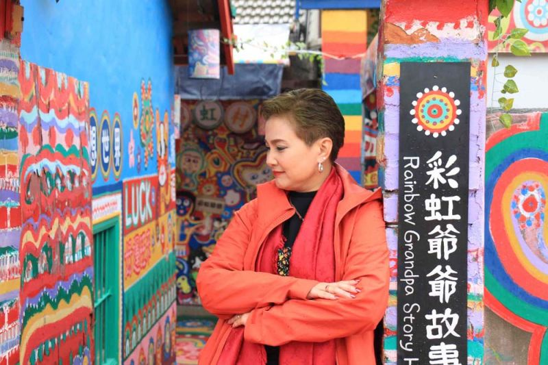 พิกัดแรกคุณน้ำผึ้งพามาละลานตาชิคๆ คูลๆ กับสีสันสดใสของ หมู่บ้านสายรุ้ง Rainbow Village หมู่บ้านอดีตทหารผ่านศึกในยุคสงครามกลางเมืองของจีนที่ลี้ภัยมาอยู่ไต้หวัน การแต่งแต้มเล่นสีเหล่านี้ก็เป็นฝีมือของอดีตทหารเก่าอย่าง คุณปู่หวง หย่ง ฟู่ วัย 95 ปี ปัจจุบันได้กลายเป็นหมู่บ้านที่ทางไต้หวันให้เป็นพื้นที่อนุรักษ์ จนเป็นแหล่งท่องเที่ยวที่มีชื่อเสียงระดับประเทศยอดฮิตติดลมบนไปแล้ว เหินฟ้ามาตั้งไกล..!! คุณน้ำผึ้งก็ไม่พลาดที่จะขอเจอตัวจริงเสียงจริงของคุณปู่ฟู่ แถมขอถ่ายรูปกับคุณปู่เป็นการด่วน