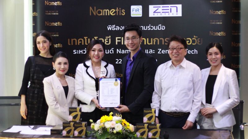 บริษัท Zen Biotech (คลอง 5 ) ได้มีพิธีลงนามความร่วมมือลิขสิทธิ์เทคโนโลยี FIR ด้านการชะลอวัย (Anti – Aging) ระหว่างแบรนด์ Nametis และ Zen Biotech ได้นางเอกสาว พิ้งกี้ สาวิกา ไชยเดช เป็นพรีเซ็นเตอร์ โดยผู้บริหารคนเก่ง คุณศิรกาญจน์ ตรีธารา (คุณป๊อปปี๊) CEO แบรนด์Nametis พร้อมด้วย คุณจารุวรรณ ตรีธารา (คุณปูเป้) รอง CEO แบรนด์ Nametis เปิดตัวสินค้า ตัวแรกของแบรนด์ Nametis ที่สุดเพื่อสุขภาพในด้านการชะลอวัย (Anti -Aging) ที่เห็นผลแม้ครั้งแรกที่ดื่ม