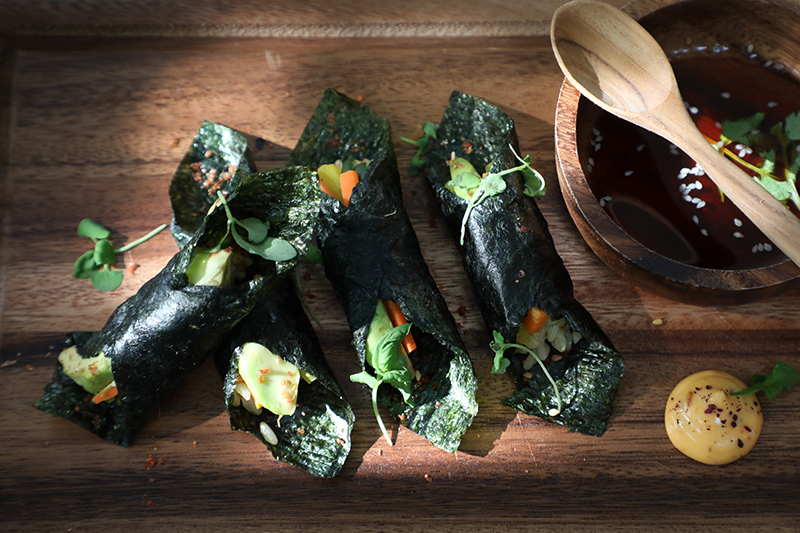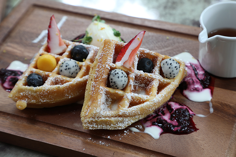 Well worth sampling are the super healthy Acai Bowl (Bt240) stuffed with dragon fruit, banana, strawberry and coconut; the Nori Wrap Maki Style (Bt275) – brown rice, pickled cucumber, diakon, watercress, toasted sesame, carrot, pickled ginger mayo and coriander ponzu; Smoked Salmon Bagel (Bt275) mixed with cream cheese and dill; and the sinful Blueberry Waffle (Bt170) with zest, mascarpone, and maple syrup.