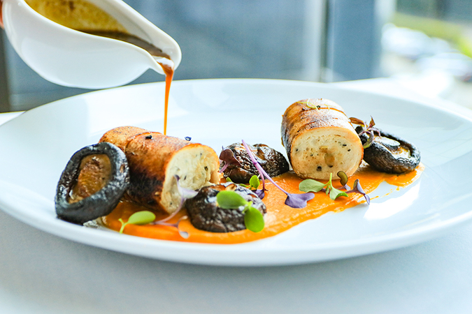 Live cooking stations offer spaghetti with sausage truffle cream sauce made with parmesan cheese, grilled Vegetable with Pesto, King Crab cocktail, seabass ceviche, smoked Salmon on charcoal brioche, and crunchy squid with garlic aioli. For the main dishes, there’s Braised pork cheek in red wine, Chicken-mushroom roulade or Seabass fillet in lemon sauce and to end the meal, home-made Gelato. The Antipasti buffet costs Bt599 and Bt999 with an additional main course.