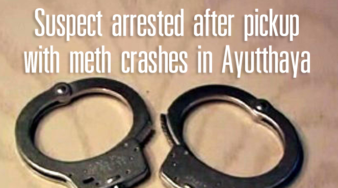 Suspect arrested after pickup with meth crashes in Ayutthaya
