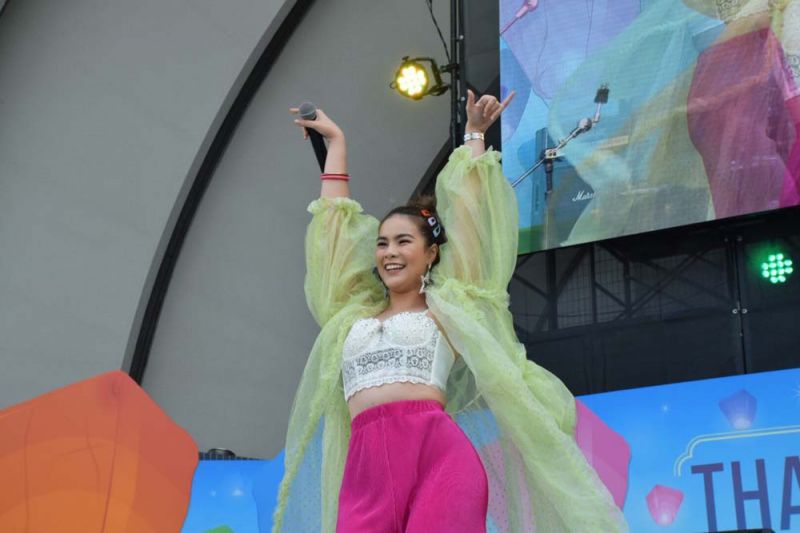 “นอกจากอาหารไทยแล้ว พวกเราตัวแทนศิลปินแกรมมี่ได้เตรียมเพลงไทยที่หลายๆคนที่นี่คิดถึงมามอบความสุขให้ทุกท่านด้วยค่ะ”