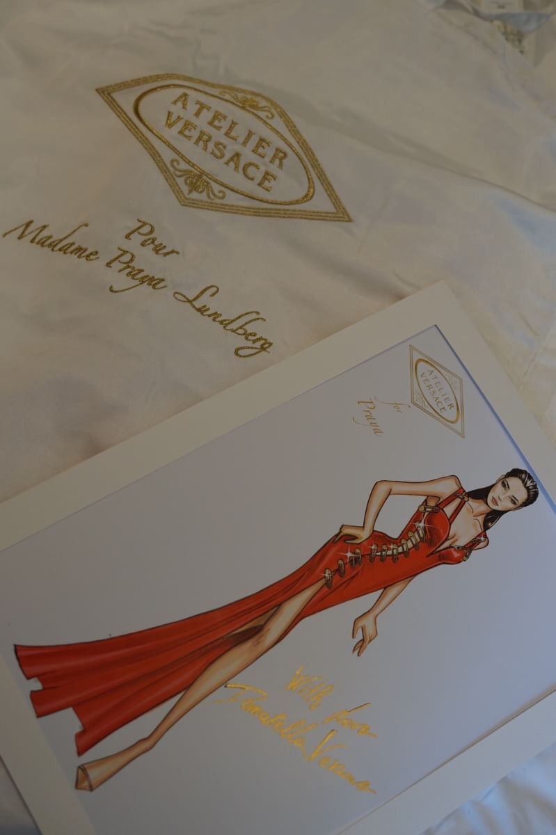 นอกจากชุดเดรสสุดเซ็กซี่จากแบรนด์ Atelier Versace แล้วยังจับคู่กับรองเท้า Versace เป็น total look ที่เรียกทุกสายตาและเสียงชัตเตอร์ให้หันมาที่เธออีกด้วย