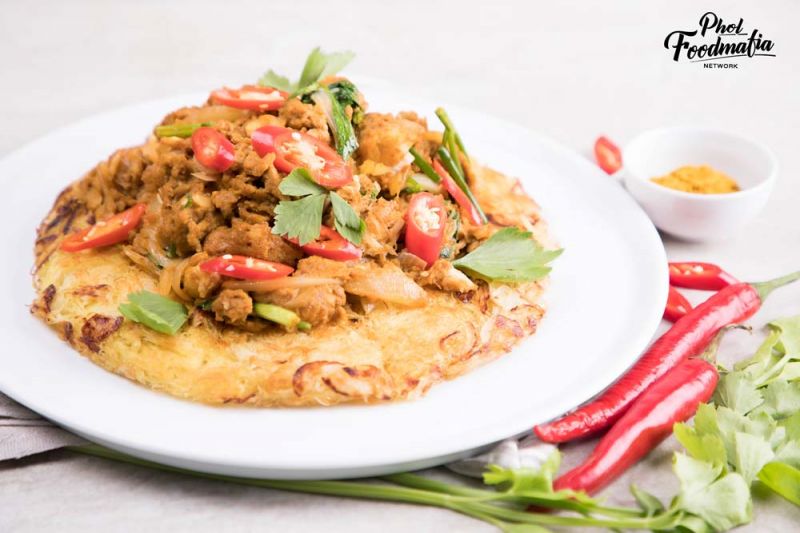 จานนี้ที่ต้องมี..อาหารว่าง “แพนเค้กเส้นหมี่ปูผัดผงกะหรี่” ที่นำเส้นหมี่มาปรุงและจี่ให้คล้ายแพนเค้กเนื้อสัมผัสกรุบกรอบ เสิร์ฟมากับหน้าปูผัดผงกะหรี่ ตบท้ายด้วยขนมหวาน “ดับเบิลช็อกโกแลตฟัดจ์” คุกกี้เนื้อหนึบอร่อยเต็มคำ