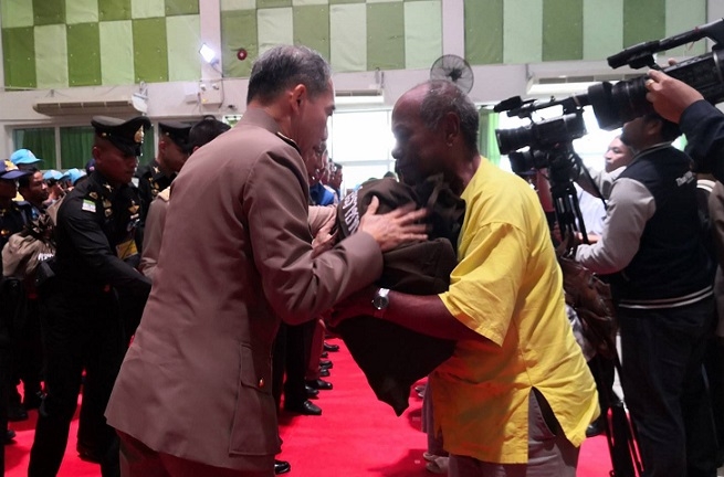 Ampon personally handed relief kits to three Ban Phai residents and three Muang residents while inspecting the flood zones.