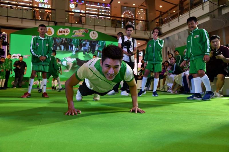 นักแสดงหนุ่มหล่ออีกหนึ่งคนที่หลงรักการเตะฟุตบอลเป็นชีวิตจิตใจ เคน-ภูภูมิ พงศ์ภาณุภาค เลยต้องขอมาโชว์ลีลาฝีเท้าในงานแถลงข่าว “ไมโล ฟุตซอล 2019 Road to Barcelona”ที่จัดขึ้นโดยการผนึกกำลังของผลิตภัณฑ์เครื่องดื่มไมโล และพันธมิตรอย่าง สำนักงานคณะกรรมการการศึกษาขั้นพื้นฐานกระทรวงศึกษาธิการ และการกีฬาแห่งประเทศไทย เฉลิมฉลองครบรอบ 10 ปี