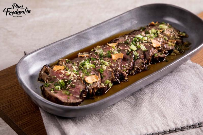 พลาดไม่ได้กับ “ไก่อบซอสมัสมั่น” นำไก่และมันฝรั่งจี่ในกระทะจนได้สีสวย ก่อนใส่อบเชย ลูกกระวาน กะทิ และนำเข้าอบ ต่อด้วย “เนื้อทาทากิ” สูตรเด็ด ‘เชฟยีสต์’ นำเนื้อไปย่างให้ได้ความสุกตามต้องการ ก่อนนำไปผสมกับน้ำหมักที่เตรียมไว้ และนำเข้าเก็บในตู้เย็น 1 คืน ก็พร้อมเสิร์ฟ