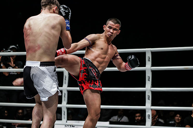 In the main event, Muay Thai legend Nong-O Gaiyanghadao of Thailand put on a striking masterclass to defeat French-Algerian opponent Brice Delval via split decision to retain the ONE Bantamweight Muay Thai World Championship. The taller and longer Delval came out the aggressor, pushing Nong-O back with a relentless barrage of punches and kicks. The Thai icon found his groove in the second round as he began to punish Delval with solid kicks to the body and to the legs all throughout the rest of the fast-paced match. The challenger, however, remained on the offensive as he managed to maintain his pace while also landing good shots on Nong-O. After five rounds of back-and-forth action, it was Nong-O who was declared the winner, remaining undefeated in his ONE career.