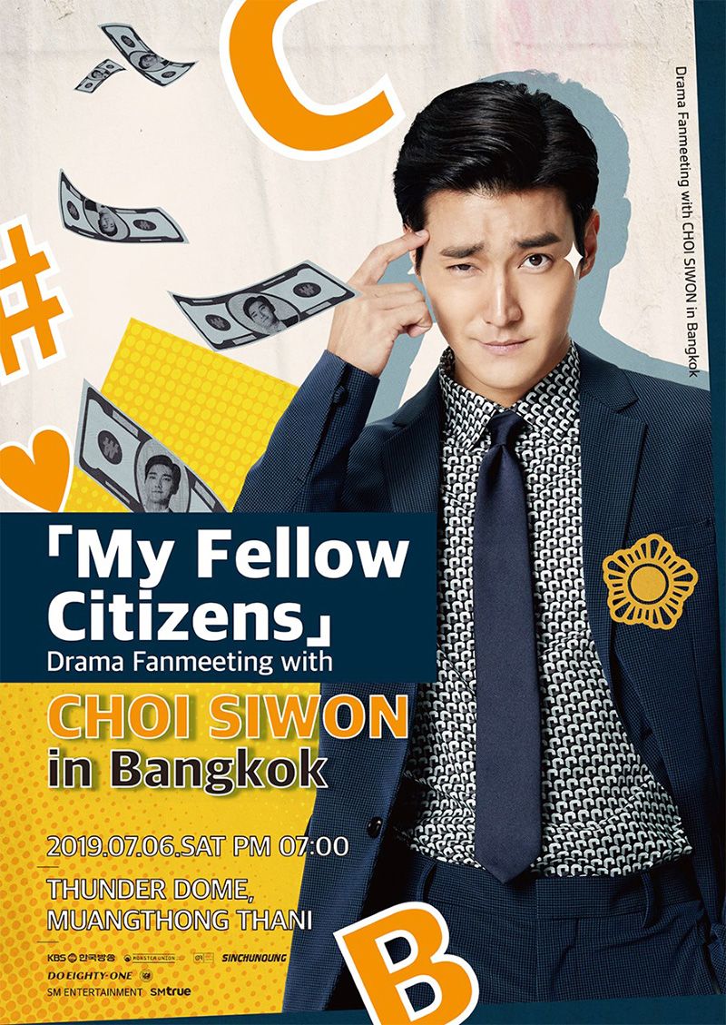 หนุ่มหล่อมากเสน่ห์ความสามารถล้น ที่ได้ฝากผลงานการแสดงไว้ในซีรี่ส์เรื่อง My Fellow Citizens อย่างหนุ่มชเวซีวอน กำลังจะมาสร้างความทรงจำสุดพิเศษกับแฟนๆ ชาวไทยในงาน My Fellow Citizens Drama Fanmeeting with Choi Siwon in Bangkok ที่จะจัดขึ้นในวันเสาร์ที่ 6 กรกฎาคม 2562 ณ ธันเดอร์โดม เมืองทองธานี