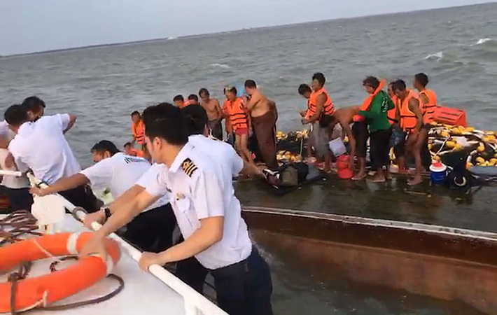 The survivors hung on to 200-litre plastic bins used for storing fish on the river until the navy vessel and another fishing boat spotted them.