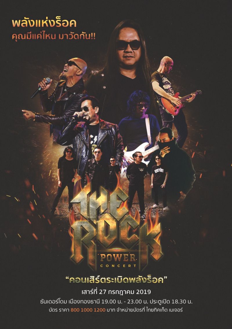 การร่วมตัวครั้งสำคัญครั้งนี้ ขาร็อกตัวจริง ต้องไม่พลาด ร่วมระเบิดความมันส์ วัดพลังร็อกไปด้วยกัน ใน “The Rock Power Concert คอนเสิร์ตระเบิดพลังร็อก” วันเสาร์ที่ 27 กรกฎาคม 2562 ที่ ธันเดอร์โดม เมืองทองธานี เวลา 19.00 น. ประตูเปิด 18.30 น. จำหน่ายบัตรที่ ไทยทิคเก็ต เมเจอร์ บัตรราคา 800, 1000, 1200 บาท สำหรับรายได้ในครั้งนี้ร่วมสนับสนุนองค์กรทางด้านกีฬา