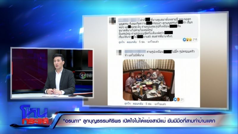 อร : “ใช่ค่ะ เพราะที่หนูโพสต์เพราะหนูน้อยใจ ที่แม่ปิดกิจการแล้วหนูไม่รู้ หนูน้อยใจว่า 8 เดือนหนูทำหน้าที่หนูดีที่สุดแล้ว ทำไมไม่บอกล่วงหน้า แล้วอยู่ดีๆ มีกลุ่มคนที่รักแม่เข้ามาถล่มหนูว่าเป็นชู้กับพ่อ โอเค ถ้ามีหลักฐาน เอาคลิปวิดีโอออกมาดีกว่ามั้ย ดีกว่าเอาภาพมาตัดนี่ไง ไปไหนก็ไปด้วยกัน ซึ่งการที่เราไปไหนกับคุณพ่อ หรือกับบุคคลอื่นที่เป็นผู้ชาย จะปรักปรำว่าเราเป็นชู้เลยเหรอคะ”