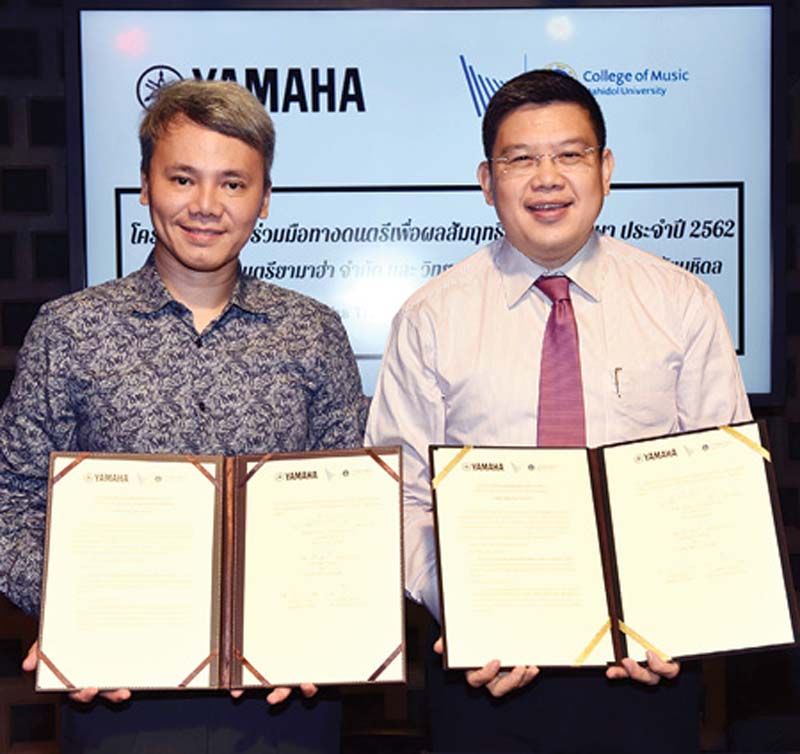 สถาบันดนตรียามาฮ่า โดย ดร.พีรวัฒน์ ชูเกียรติ กรรมการผู้จัดการ และ พีระศักดิ์ มุ่งสมานกูล ผู้จัดการทั่วไปฝ่ายเปียโนและคีย์บอร์ด บริษัท สยามดนตรียามาฮ่า จำกัด, ดร.ยุทธพงศ์ แสงสมบูรณ์ Music Director สถาบันดนตรียามาฮ่า พร้อมด้วย อาจารย์ ดร.ณรงค์ ปรางค์เจริญ คณบดีวิทยาลัยดุริยางคศิลป์ มหาวิทยาลัยมหิดล ร่วมลงนามโครงการความร่วมมือทางดนตรีเพื่อผลสัมฤทธิ์ทางการศึกษา ประจำปี 2562 เพื่อเป็นการเปิดเส้นทางการศึกษาดนตรี และประสบการณ์ใหม่ๆ แก่นักเรียนโรงเรียนดนตรียามาฮ่า ในเครือข่ายทั่วประเทศที่เรียนดนตรีหลักสูตร “ยามาฮ่า” มาตรฐานระดับโลกและหนึ่งเดียวจากประเทศญี่ปุ่น ที่ผ่านเข้าสู่รอบชนะเลิศเวที “ยามาฮ่าไทยแลนด์ มิวสิค เฟสติวัล 2562” กิจกรรมการแข่งขันดนตรีระดับประเทศอาทิ เปียโน อิเล็กโทน กีตาร์ กลอง ไวโอลิน ฯลฯ ที่ได้รับความสนใจจากนักเรียนมากกว่า 3,000 คน โดยรอบชิงชนะเลิศจะมีขึ้นในวันที่ 26-29เมษายนนี้ ณ หอประชุมมหิดลสิทธาคาร และ MACM Hall วิทยาลัยดุริยางคศิลป์ มหาวิทยาลัยมหิดล จังหวัดนครปฐม