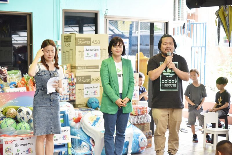 นอกจากจะสร้างสรรค์ผลงานดีๆที่มีคุณค่าต่อสังคมออกมาอย่างต่อเนื่อง ล่าสุด LINE TV ร่วมกับบริษัท เจ เอส แอล โกลบอล มีเดีย จำกัด ยังชวนนักแสดงจาก LINE TV Originals ซีรีส์ “พรุ่งนี้…จะไม่มีแม่แล้ว”และเหล่าแฟนๆซีรีส์ฯ ไปเลี้ยงอาหารและมอบสิ่งของต่างๆ อาทิ อุปกรณ์กีฬา อุปกรณ์การเรียน และข้าวของเครื่องใช้จำเป็นแก่เด็กๆกันถึงที่มูลนิธิบ้านนกขมิ้นอีกด้วย