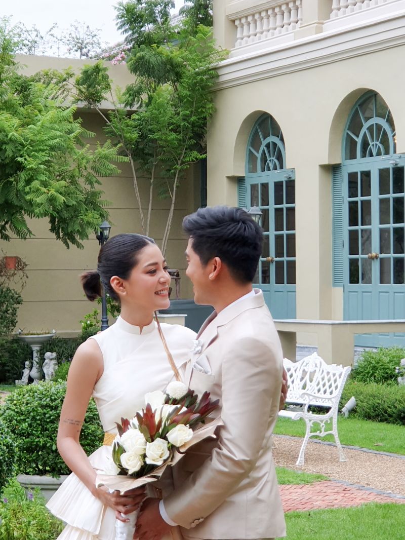 แน่นอนว่าสาวมั่นคนนี้แต่งงานทั้งทีย่อมไม่ธรรมดาแน่นอน เพราะชุดแต่งงานที่ใส่ในวันนี้สะดุดตาแขกเหรื่อที่มาร่วมงานมากมาย โดยชุดของเจ้าสาวและเจ้าบ่าวที่ตัดเย็บจากผ้าไหมปักธงชัยจากโคราชทั้งหมดและแน่นอนว่าชุดเจ้าสาวถูกจับตามากที่สุดอย่างแน่นอน เพราะกว่าจะมาเป็นชุดเจ้าสาวที่เรียบหรูดูแพงเบอร์นี้ต้องใช้เวลาพอสมควร