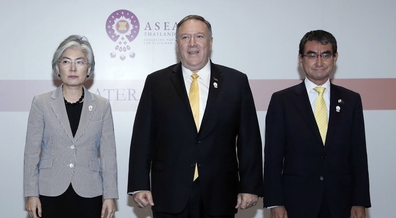 In a bid to help resolve the dispute, Pompeo held a three-way meeting with South Korean Foreign Minister Kang Kyung-wha and then Japanese Foreign Minister Taro Kono in Bangkok in August, but the talks produced no tangible outcome.
