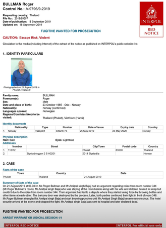 Pol Captain Taecsin Deethong-on of Karon Police Station told The Nation on Thursday (September 19) that police had approached Interpol to issue the Red Notice two days ago. He said it was too early to determine whether Bullman had fled the country, adding that though police had heard reports of the suspect fleeing to Vietnam, a country he has reportedly travelled to in the past, these were yet to be confirmed.