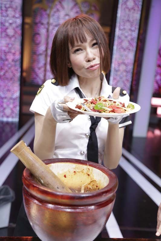 หอบเพลงใหม่ “รปภ.” มาโชว์ท่าแดนซ์แซบๆ ในรายการ “หอม เล็ก เป็ก โชว์” ว่าซี้ดแล้ว ยังไม่สู้เมนูส้มตำเผ็ดไฟลุก ของลูกทุ่งหมอลำ จินตหรา พูนลาภ ที่เจ้าตัวต้องตำกินเองก่อนขึ้นเวทีโชว์ลูกคอทุกครั้งจะได้ร้องเพลงลื่นคอ แค่พูดถึงส้มตำ ก็ทำเอา 3 พิธีกร หอม, เล็ก, เป็ก เปรี้ยวปากน้ำลายสอ ว่าแล้วก็หอบครก-สาก ปู- ปลาร้า มาให้พี่จินตำส้มตำให้กินกันกลางเวที แต่ส้มตำฉบับจินตหรายืนตำที่โต๊ะคงไม่ถนัด ว่าแล้วก็ยกครกลงมานั่งขัดสมาธิโขลกกับพื้น จกปลาร้าเป็นต่อนๆ กินโชว์กลางรายการ จะเผ็ด แซ่บ ไฟลุกขนาดไหน? ดูจากสีหน้าพิธีกรก็รู้ “หอม เล็ก เป็ก โชว์” เสาร์ที่ 13 ก.ค. นี้ 12.15 น. ทางช่องวัน31
