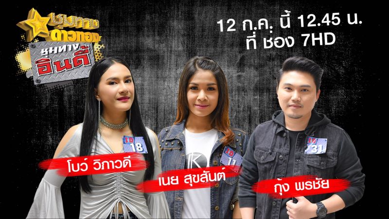 ใกล้จะได้แชมป์กันแล้วกับซีซั่นที่สุดแห่งปี “ชุมทางอินดี้” ที่เหล่าผู้เข้าแข่งขันขับเคี่ยวกันมาหลายเดือน รอยยิ้ม เสียงหัวเราะ และน้ำตา กว่าจะมาถึงจุดแห่งความสำเร็จ ขึ้นแท่นเป็นศิลปินลูกทุ่งอินดี้คนใหม่ของวงการพิธีกรระดับบิ๊กบอส “นก”บริพันธ์ ชัยภูมิ แห่งบริษัท เซเว่น สตาร์ สตูดิโอ จำกัด ชวนมาลุ้นแบบห้ามกระพริบตา ว่าใครจะได้เป็นดาวดวงใหม่ประดับวงการลูกทุ่ง ทั้งตำแหน่ง “แชมป์ชุมทางอินดี้” , “อินดี้ฟ้าผ่า” และ “อินดี้มหาชน”ลุ้นแบบติดขอบจอในโค้งสุดท้ายกับโปรเจ็กต์ “ชุมทางอินดี้” ได้ในรายการ “ชุมทางดาวทอง”ออกอากาศวันศุกร์ ที่ 12 กรกฎาคม 2562เวลา 12.45-13.45 น. ทางสถานีโทรทัศน์ช่อง 7 HD ชมรายการย้อนหลังได้ที่www.bugaboo.tv/chumtangindy, Youtube Channel ชุมทางดาวทอง และเฟซบุ๊กแฟนเพจwww.facebook.com/ชุมทางดาวทอง