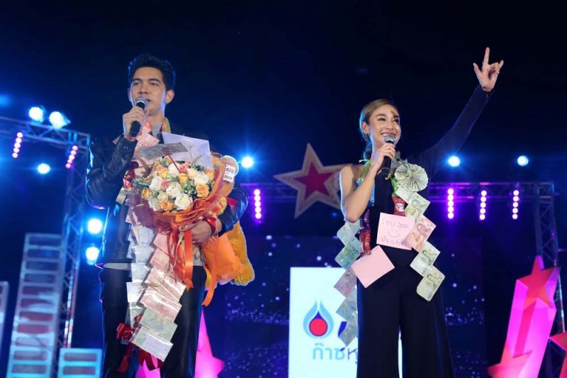 ไม่ว่าจะเป็นพระนางคู่ขวัญจากช่อง 7HD มิกค์ ทองระย้า และ โบว์ เมลดา จากละคร มนตร์กาลบันดาลรัก ที่เพิ่งลาจอไป เข้ม หัสวีร์ และ นาว ทิสานาฏ จากละครที่กำลังมาแรงอย่าง หัวใจลูกผู้ชาย ควงคู่มาสลับกันหวานจัดหนัก และยังมีเพลงที่มาร่วมประชันความฟินกันอีก งานนี้แฟนคลับแต่ละคนต่างยกทัพมาถือป้ายไฟมาเชียร์ แถมยังหอบดอกไม้ และมาลัยแบงค์มาให้กำลังใจกันเพียบ