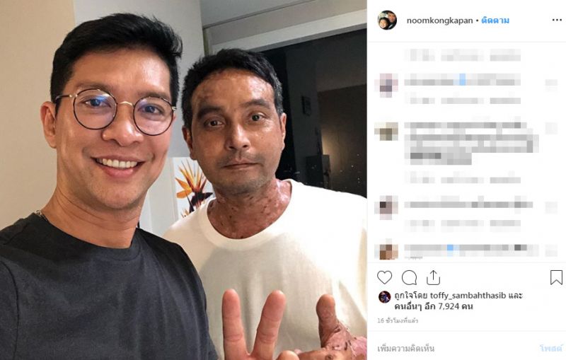 ล่าสุด หนุ่ม-คงกะพัน แสงสุริยะ รุ่นน้องที่สนิท คุณ เมฆ-วินัย ไกรบุตร ได้เข้าเยี่ยม พร้อมเปิดเผยอาการของนักแสดงรุ่นพี่ว่า “อาการดีขึ้นไม่มีตุ่มขึ้นเพิ่มอีกแล้ว…แสดงว่าโรคอยู่ในความควบคุม…แผลก็หายประมาณ 80% แล้ว…ที่เหลือแผลสดก็รอแผลแห้ง…หลังจากนี้ดีขึ้นก็น่าจะได้กลับไปพักฟื้นที่บ้านครับ…กำลังใจก็ดีขึ้นมาก”