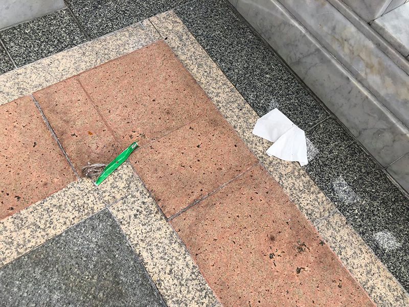 ผมเจอกระทั่งถุงเท้า ถุงเท้า !!! ใครไม่รู้มาวางบนราวบันได หน้าทางเข้าวิหารเลย และก็ไม่มีใครสนใจ ไม่รู้เจ้าของมาถอดก่อนเข้าวิหารหรือเปล่า ก็ไม่อาจทราบได้ แต่ก็ไม่มีใครมาจัดการ