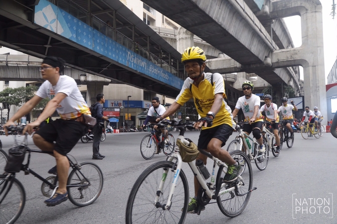 Sine 2,000 cyclists, who rode their bikes along Bangkok’s roads to persuade commuters to use bicycles or walk instead of using their cars, also participated in the event.