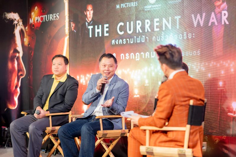 โดยครั้งนี้ M PICTURES (เอ็ม พิคเจอร์ส) ร่วมกับ การไฟฟ้านครหลวง (กฟน.) และ MAJOR CINEAD (เมเจอร์ ซีนีแอด)จัดงานแถลงข่าวเปิดตัวภาพยนตร์ “THE CURRENT WAR สงครามไฟฟ้า คนขั้วอัจฉริยะ” รอบปฐมทัศน์ประเทศไทย เมื่อวันพุธที่ 17 กรกฏาคม 2562 ณ โรงภาพยนตร์สยามภาวลัย ศูนย์การค้าสยามพารากอน โดยงานนี้ได้ ดีเจเอกกี้ -เอกชัย เอื้อสังคมเศรษฐ รับหน้าที่พิธีกรผู้ดำเนินรายการ และได้รับเกียรติจากสามผู้บริหารจากสามพันธมิตรขึ้นร่วมเสวนาและสัมภาษณ์พูดคุยถึงประวัติความเป็นมาของสงครามไฟฟ้า และความน่าสนใจของภาพยนตร์ เริ่มจาก คุณพรชัย ว่องศรีอุดมพร ประธานเจ้าหน้าที่บริหารฝ่ายภาพยนตร์ไทยและต่างประเทศบริษัท เอ็ม พิคเจอร์ส จำกัด , คุณผาสุก สัมปุณณะโชติ ผู้อำนวยการฝ่ายสื่อสารองค์กร การไฟฟ้านครหลวง (กฟน.) และ คุณสุรเชษฐ์ อัศวเรืองอนันต์ รองประธานเจ้าหน้าที่บริหารฝ่ายสื่อโฆษณา บริษัท เมเจอร์ ซีนีแอด จำกัด ร่วมด้วยแขกรับเชิญสุดพิเศษ ซัน ประชากร ปิยะสกุลแก้ว นักแสดงหนุ่มดีกรีบัณฑิตวิศวกรรมไฟฟ้า ก่อนจะปิดท้ายด้วยการถ่ายภาพร่วมกันบนเวทีของผู้บริหาร แขกผู้มีเกียรติ และผู้ให้การสนับสนุน และร่วมชมภาพยนตร์ “THE CURRENT WAR สงครามไฟฟ้า คนขั้วอัจฉริยะ” รอบปฐมทัศน์เมืองไทยพร้อมกันในโรงภาพยนตร์