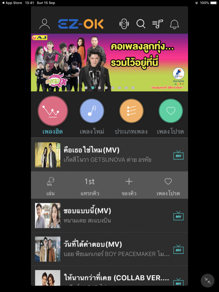 AJ, which is well-known among Thais for its home electrical and home entertainment appliances, has invested more than Bt100 million to develop its cloud karaoke system. The service must be used with the EZ-OK app and users need to first apply for a monthly service with AJ. The app, which is available for both Android and iOS devices, serves as an interface for you to browse through selections of over 25,000 songs, mostly popular Thai tracks, and the app will fetch the songs of your choice.