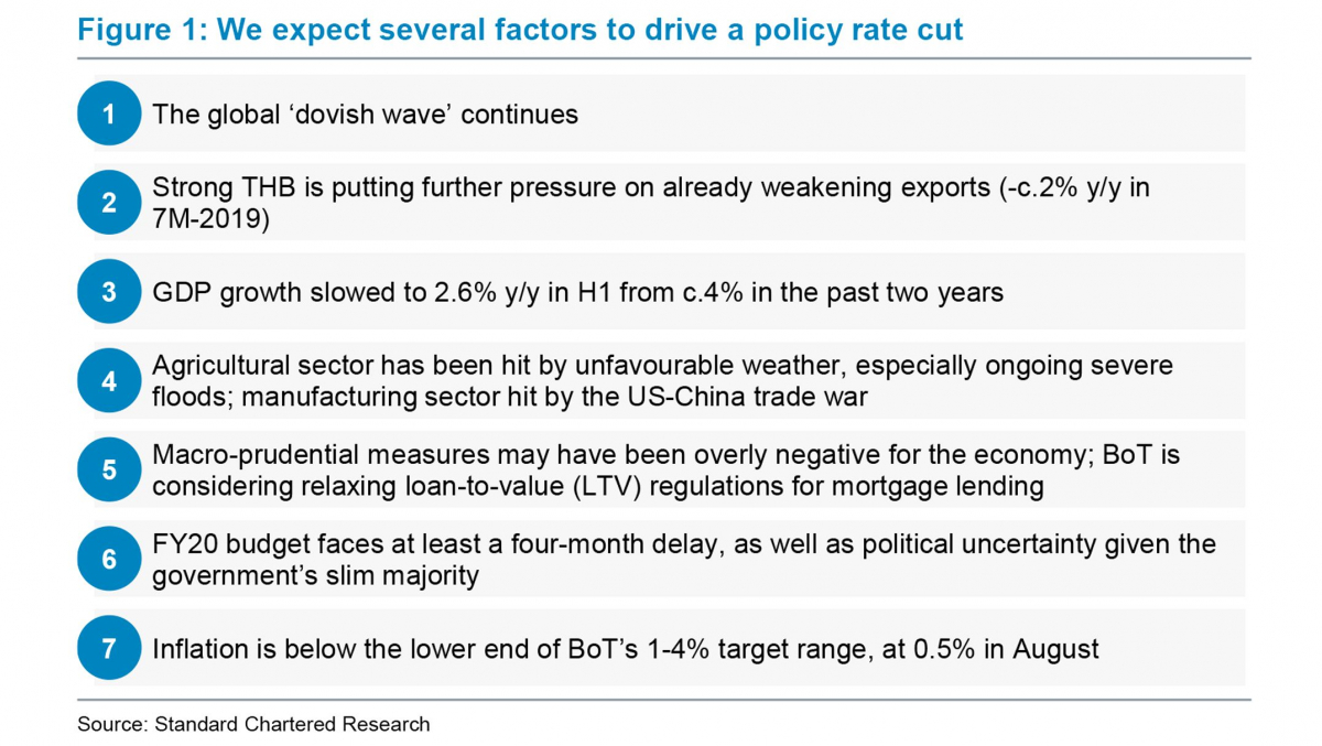 This would be the second consecutive cut and take the rate to the floor, reached during the global financial crisis, Standard Chartered Bank economist Tim Leelahaphan said.