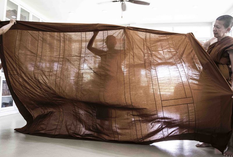 สุนันท์ ล้อสมทรัพย์ ช่างภาพอิสระ อดีตช่างภาพหนังสือพิมพ์ ผู้ชื่นชอบการถ่ายภาพวิถีชีวิตที่สะท้อนความเป็นอยู่ของผู้คน ธรรมชาติ และความเชื่อ ผู้ถ่ายทอดความรู้สึกด้วยผลงาน ‘จีวร’ เธอเล่าว่า “เป็นครั้งแรกในชีวิตที่ได้รู้ว่าภิกษุครองไตรจีวร คือมี 3 ชิ้น ภิกษุณีครองปัญจจีวร คือมี 5 ชิ้น จีวรแต่ละชิ้นที่เป็นมากกว่าแค่การนุ่งห่ม แต่แฝงไปด้วยพระธรรมวินัย หรือแม้แต่กระบวนการให้ได้มาซึ่งจีวร ก็มีวิธีปฏิบัติตามพระธรรมวินัยอยู่ มีเรื่องราวที่เล่าได้มากมาย ทำให้ทึ่งกับธรรมะของพระพุทธเจ้าว่า สามารถดำรงอยู่ในทุกวัตถุ ทุกการปฏิบัติในชีวิต”