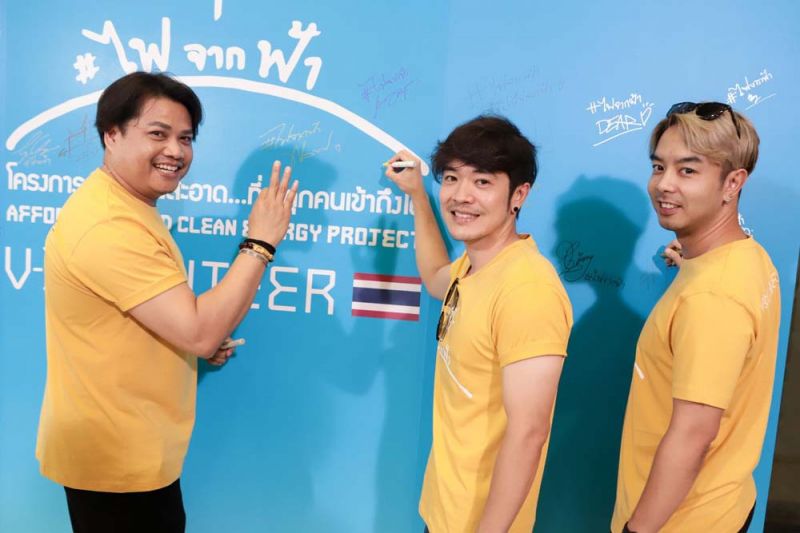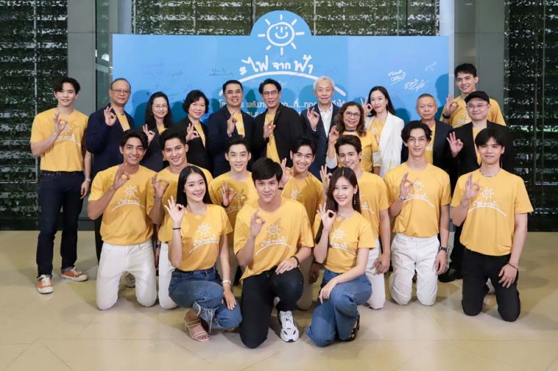 เบิร์ด-ธงไชย แมคอินไตย์ พร้อมด้วยเหล่าศิลปิน นักร้อง นักแสดง ดีเจ ผู้ประกาศข่าว สังกัดแกรมมี่ ช่อง ONE 31, ช่อง GMM 25,GREENWAVE กว่า 200 ชีวิต อาทิ นัท มีเรีย,พลพล พลกองเส็ง, ลุลา-กันยารัตน์, ป๊อบ- ปองกูล, เบล-สุพล, ต่อ-ธนภพ, อัค-อัครัฐ,เซียงเซียง-พรสรวง, เฟิร์น-นพจิรา, เปาวลี-พรพิมล, เอิ้นขวัญ-วรัญญา, แช่ม แช่มรัมย์,ลำยอง หนองหินห่าว, ข้าวทิพย์ ธิดาดิน,ศิลปินวง Cocktail, ปณต ศิลปินวง Getsunova, กวาง Abnormal, ปั้น Basher, เหวยเหวย ฮัน, เดียร์ ลิลลี่, แคน-อติรุจ,ดีเจดาด้า, ดีเจเป้-วิศวะ, ลี-ฐานัฐพ์, เจน- รมิดา, นํ้าตาล-ทิพนารี, นนน-กรภัทร์, ซิง- หฤษฎ์, ทีมผู้ประกาศข่าวช่องวัน และกลุ่มบราโว่บอยส์ ฯลฯร่วมกันประกาศเจตนารมณ์เป็น THAILAND VOLUNTEER ภายในงานวันเปิด “ไฟ จาก ฟ้า” ณ อาคารจีเอ็มเอ็มแกรมมี่ เพลส