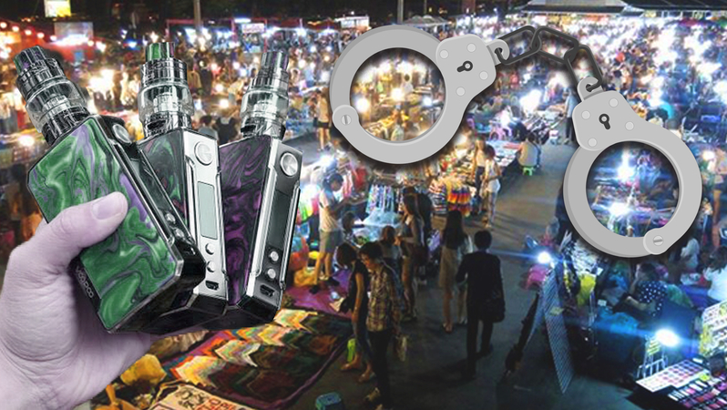 Officials from the Office of the Consumer Protection Board led police to search the night market along the Ram-Indra expressway following tips-off that vaporizers and the accompanying liquids were on sale.