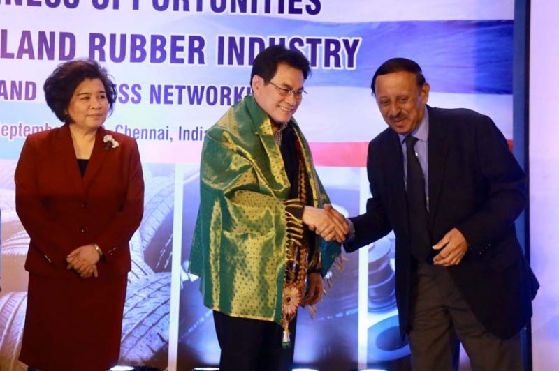 รายงานข่าวกระทรวงพาณิชย์ ระบุว่า สำหรับการสัมมนาที่เมืองเจนไน เรื่องโอกาสใหม่ทางธุรกิจของอุตสาหกรรมยางระหว่างไทยและอินเดียเป็นเป้าหมายการเปิดตลาดยางพาราของรองนายกรัฐมนตรีและรัฐมนตรีว่าการกระทรวงพาณิชย์ ซึ่งเป็นนโยบายเชิงรุกของรัฐบาลนี้