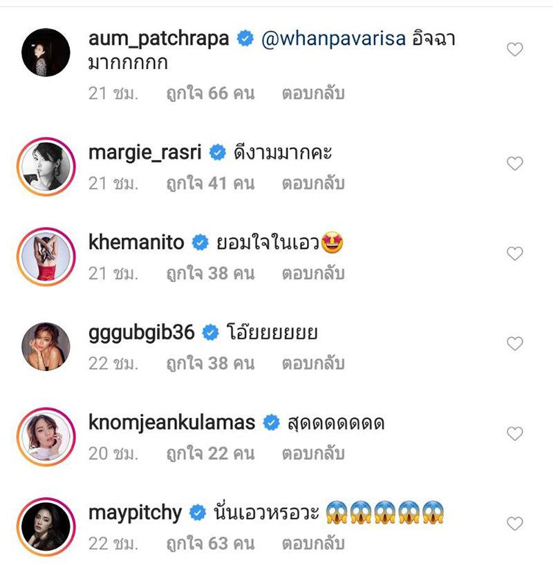 โดยแคปชั่น “ยอมแพ้ที่ 20.9 นิ้ว ณ ปีนี้ ถ้าไม่ไปพังที่ปารีสอาทิตย์ก่อนน้องไม่พลาดเป้า 19 นิ้วแน่นอน @sean_poem !! ฮืออออออ #งานยานแม่แห่งชาติ” ซึ่งงานนี้ทำเอาเพื่อนๆ ในวงการบันเทิงแห่เข้ามาคอมเมนต์กันรัวๆ รวมถึงซุปตาร์สาว อย่าง อั้ม พัชราภา ไชยเชื้อ ก็เข้ามาแสดงความเห็นเช่นกันว่า “อิจฉามากกก”