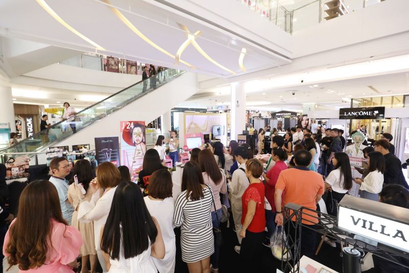 งานนี้…นอกจากจะได้พบกับทัพสินค้าเครื่องสำอางและน้ำหอมจากแบรนด์ชั้นนำอาทิ LAMER,THREE,CLARINS,SHISEIDO,LANCOME,SULWHASOO,DII ฯลฯที่ขนกันมาแบบไม่มีใครยอมใครแล้ว แต่ละแบรนด์ยังแอบมีเซอร์ไพรส์สุดพิเศษให้นักช้อปสายบิวตี้ได้ฟินแบบจุกๆ เริ่มที่แบรนด์REVLON ที่ชวนหนุ่มฮอตฟิล์ม-ธนภัทร กาวิละ มาMeet & Greet ทั้งร้องเพลง เล่นเกมส์แบบใกล้ชิ๊ด ใกล้ชิด พร้อมบอกต่อการดูแลผิวพรรณสไตล์พระเอกแบบไม่มีกั๊กว่า“ผมทำงานเยอะก็ต้องดูแลตัวเองเป็นพิเศษ ที่ทำเป็นประจำก็คือ การดื่มน้ำเยอะๆ พักผ่อน นอนให้มากที่สุดเท่าที่จะทำได้ แต่บางทีก็ยังไม่พอ ดังนั้นการมีตัวช่วยดีๆ มาทำให้เราดูดีขึ้นก็เป็นสิ่งจำเป็น อย่างถ้าอยู่กองถ่ายทำงานก็ต้องเลือกเมคอัพดีๆ เนื้อบางเบา ปกปิด ช่วยให้เราออกหน้ากล้องแล้วยังดูดีได้ ถือเป็นตัวช่วยเร่งด่วนที่ผมเลือกครับ”