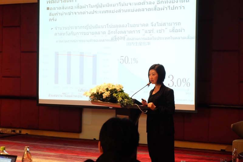 นางสาวบรรจงจิตต์ อังศุสิงห์ อธิบดีกรมส่งเสริมการค้าระหว่างประเทศ เปิดเผยว่า “กรมส่งเสริมการค้าระหว่างประเทศ โดยสำนักส่งเสริมการค้าสินค้าไลฟ์สไตล์ และสำนักงานส่งเสริมการค้าในต่างประเทศ ณ กรุงโตเกียว ร่วมมือกับกระทรวงเศรษฐกิจ การค้า และอุตสาหกรรมของญี่ปุ่น และศูนย์อาเซียน – ญี่ปุ่น จัดสัมมนาให้ความรู้กับผู้ประกอบการสินค้าเครื่องนุ่งห่ม สิ่งทอ ผ้าผืน และผู้แทนภาครัฐ โดยมีวิทยากรผู้ทรงคุณวุฒิ 3 ท่าน จากประเทศญี่ปุ่น ได้แก่ Mr. Norimitsu Suso, Director สถาบัน Japan Textile Evaluation Technology Council (JTETC), Mr. Koji Kawabata, Supervisor สถาบัน Boken Quality Evaluation Institute, และ Ms.Yuri Takezawa, Project Leader บริษัท Itochu Fashion System จำกัด มาให้ความรู้เรื่องมาตรฐานและเอกสารรับรองมาตรฐานสิ่งทอที่มีคุณสมบัติพิเศษ (Functional Textile ) เช่น มาตรฐาน SEK หรือเครื่องหมายที่ได้รับการรับรองจากสถาบัน JTETC ที่จะให้กับสินค้าสิ่งทอที่มีคุณสมบัติพิเศษผ่านการตรวจสอบคุณสมบัติการยับยั้งแบคทีเรีย การดับกลิ่น การยับยั้งเชื้อรา การป้องกันไวรัส ซึ่งปัจจุบันเครื่องหมายรับรอง SEK เป็นที่ยอมรับในประเทศญี่ปุ่นและประเทศเพื่อนบ้าน นอกจากนี้ วิทยากรยังให้คำแนะนำในการพัฒนาผ้าผืนหรือสิ่งทอที่มีคุณสมบัติพิเศษ (Functional Textile) ผลิตเป็นชุดกีฬา (Sportswear) ชุดทำงาน (Work Wear) และเสื้อผ้าสำหรับผู้สูงอายุ ตลอดจนการบริหารจัดการองค์กรตามเป้าหมายการพัฒนาที่ยั่งยืน Sustainable Development Goals–SDGs ขององค์การสหประชาชาติอีกด้วย”