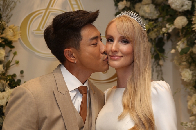 Thai actor Boy Pisanu Nimsakul and his newly wed wife Amanda Persson, who is also involved with the entertainment industry, held a press conference on Saturday at Spectrum Lounge & Bar, at the Hyatt Regency Hotel in Bangkok.